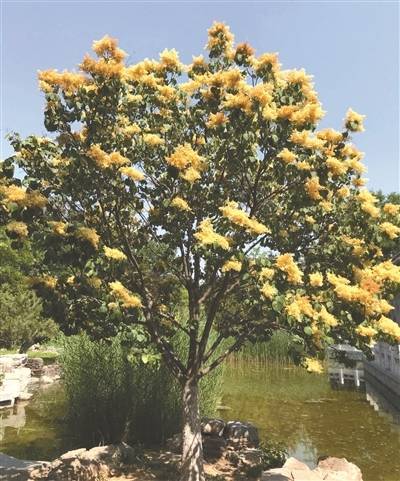 北京黄丁香:属木犀科丁香属大灌木或小乔木,普通丁香多在4月中旬至5月上旬开放,而北京黄丁香花期为5月中旬至6月上旬,故为晚花丁香品种,也是北京少有的浓香型观花乔木之一。